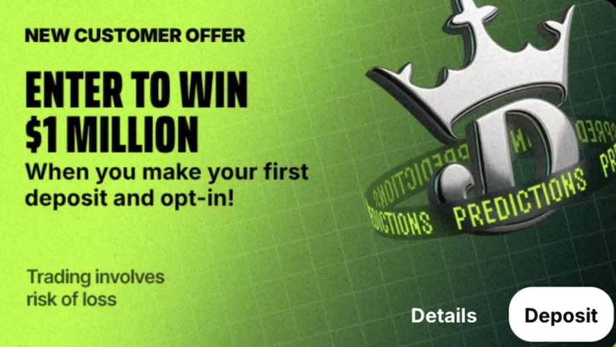 DraftKings is offering launch promotions to generate early interest in DraftKings Predictions. The company said customers can enter for a chance to win $1 million through multiple participation options.